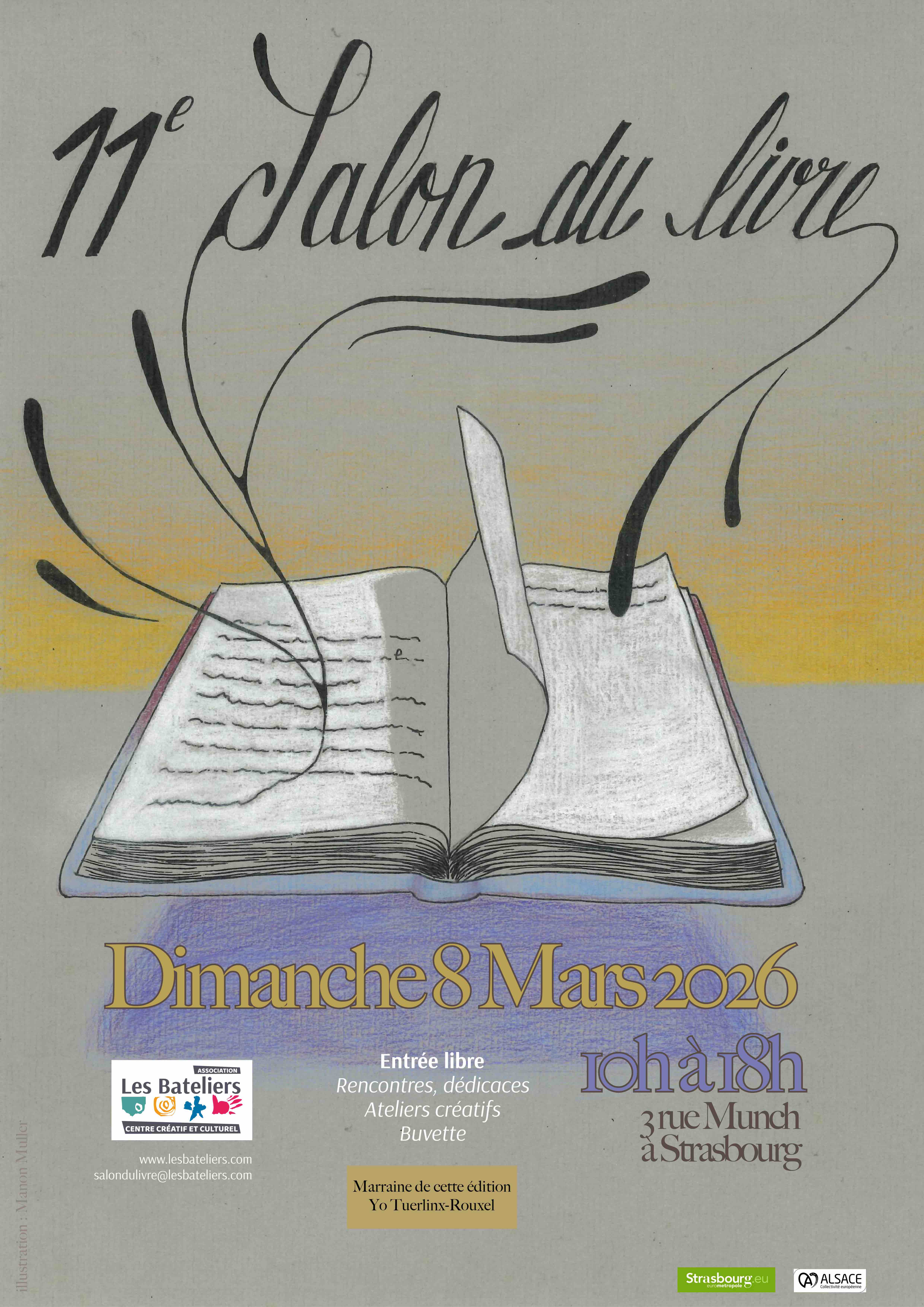 Nous sommes très heureux de vous annoncer que nous serons ravi·es de vous accueillir pour le 9ème Salon du Livre Strasbourg-Krutenau le dimanche 8 mars 2026, de 10h à 18h.