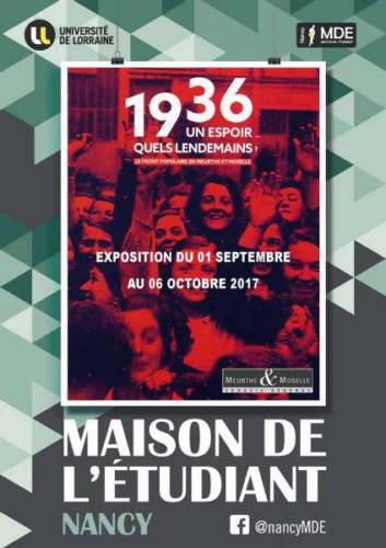 L’exposition «1936 un espoir ... quels lendemains» retrace 80 ans après son accession au pouvoir , les circonstances de l’avènement du Front populaire en Meurthe-et-Moselle , elle rappelle le contexte politique national et les spécificités départementales de cet avènement, au printemps 1936, en décline les principales mesures socio-économiques et leur mise en application au plan local et départemental. De la semaine de 40 heures aux deux semaines de congés payés, de l’extension des conventions collectives à l’institution de délégués du personnel, le gouvernement du Front populaire a remodelé en profondeur l’organisation des entreprises et du monde du travail et, par ce fait, des pans entiers de la société contemporaine. En dépit de réussites économiques avec, notamment, une décrue sensible du chômage, le Front populaire, victime de ses divisions internes, n’a su empêcher son échec politique et électoral dès 1937.