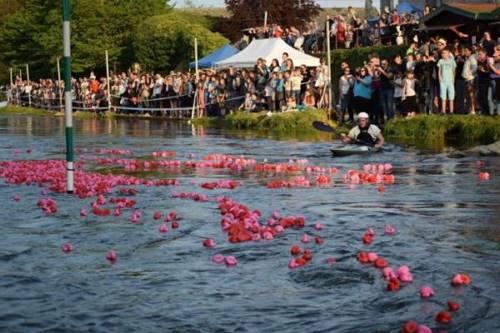Venez nombreux encourager vos canards lors d’une course folle sur le bassin d’eaux vives .