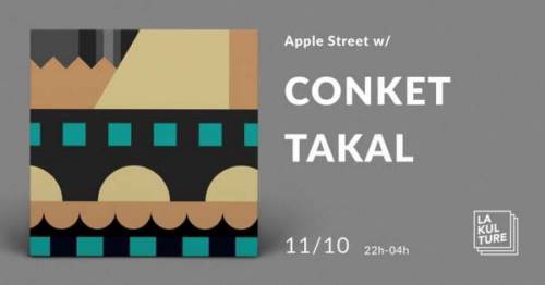 "Apple Street est un collectif de DJ’s Strasbourgeois de divers horizons tant ethniques que sociaux. 5 DJ’s se partagent la richesse culturelle et diversifiée qu’offre la musique électronique ainsi que ses rythmes frénétiques : TakaL, El Chino, Kicksand et Conket."
