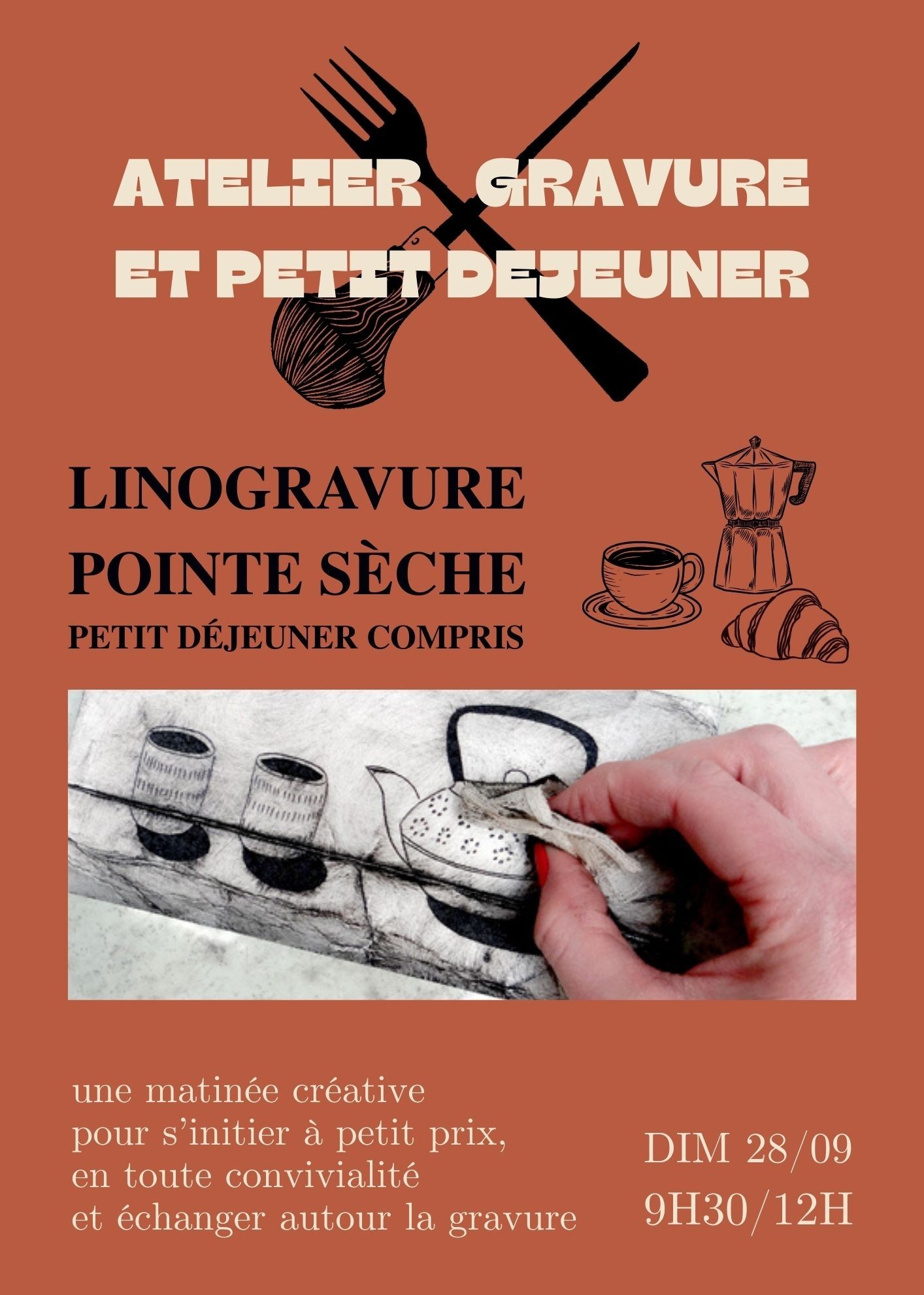 C'est la rentrée, l'automne s'installe doucement et parfois les dimanches matins peuvent être un peu maussades.. alors pourquoi ne pas venir découvrir la gravure autour d'un petit-déjeuner réconforant et très convivial.