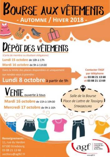 L’AGF du Bas-Rhin propose sa traditionnelle Bourse aux vêtements automne / hiver 2018 !