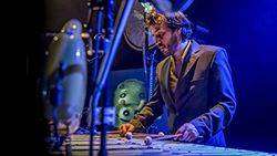 C’est parti mon Kiki est un spectacle instrumental qui nous plonge dans un univers musical ludique où le vibraphone occupe la place centrale sur scène. Un personnage burlesque et muet évolue au gré de ses souvenirs d’enfance et nous invite à pénétrer dans son antre de petit garçon : on y découvre une panoplie de jouets sonores et sa peluche fétiche : le chien Kiki, fidèle compagnon de jeu qui éveille son imagination.