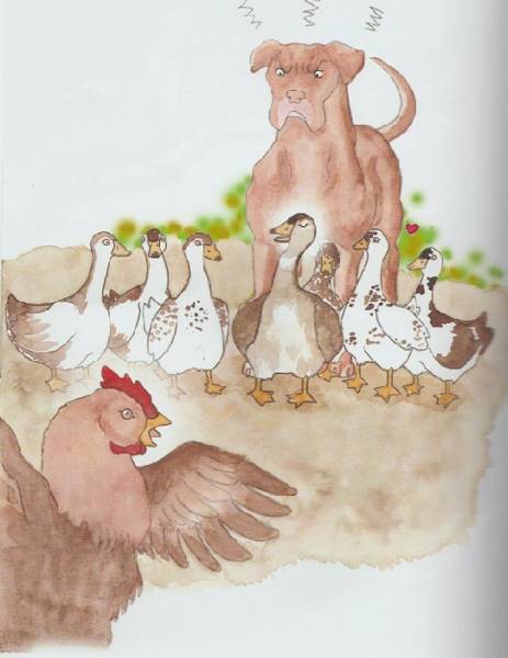 Dessin : llustration de Lorraine Marchand pour la fable Le canard et la poule
