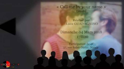 Equinoxe vous invite à la projection de Call me by your name de Luca Guadagnino, au Caméo Commanderie. Vous bénéficiez d’un tarif groupé de 4 Euros. Rendez-vous au Centre LGBTI+ à 17h pour un départ groupé. Pour les autres, rendez-vous à 17h40 devant l’entrée du cinéma.
