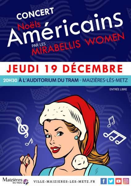 Venez profiter du concert « Noëls Américains » proposé par les Mirabellis Women jeudi 19 décembre à 20h30, à l’auditorium du Tram.