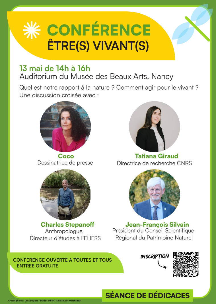 https://biodiversite.grandest.fr/evenements/conference-etres-vivants/ https://forms.office.com/Pages/ResponsePage.aspx?id=Ta-djLHG7EqfDlsZAWWbqN7tuKNMThdDt83Da1Dl9LRUNVhZUzRWU0ZBVVQ0QTRORkY0VFpVSzdSNSQlQCN0PWcu