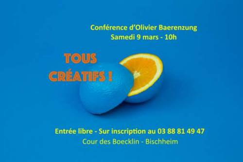 Une conférence interactive pour découvrir comment mobiliser nos ressources créatives afin de développer des solutions innovantes et favoriser l’expression de notre personnalité dans tous les domaines de notre vie. Tous publics à partir de 16 ans. Sur inscription au 03 88 81 49 47 ou courdesboecklin@ville-bischheim.fr