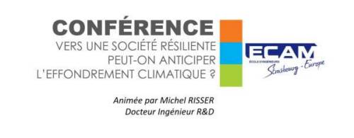 A ce titre, Michel Risser enseignant-chercheur à l’ECAM Strasbourg-Europe animera une conférence sur le thème suivant : « Vers une société résiliente : peut-on anticiper l’effondrement climatique? ».