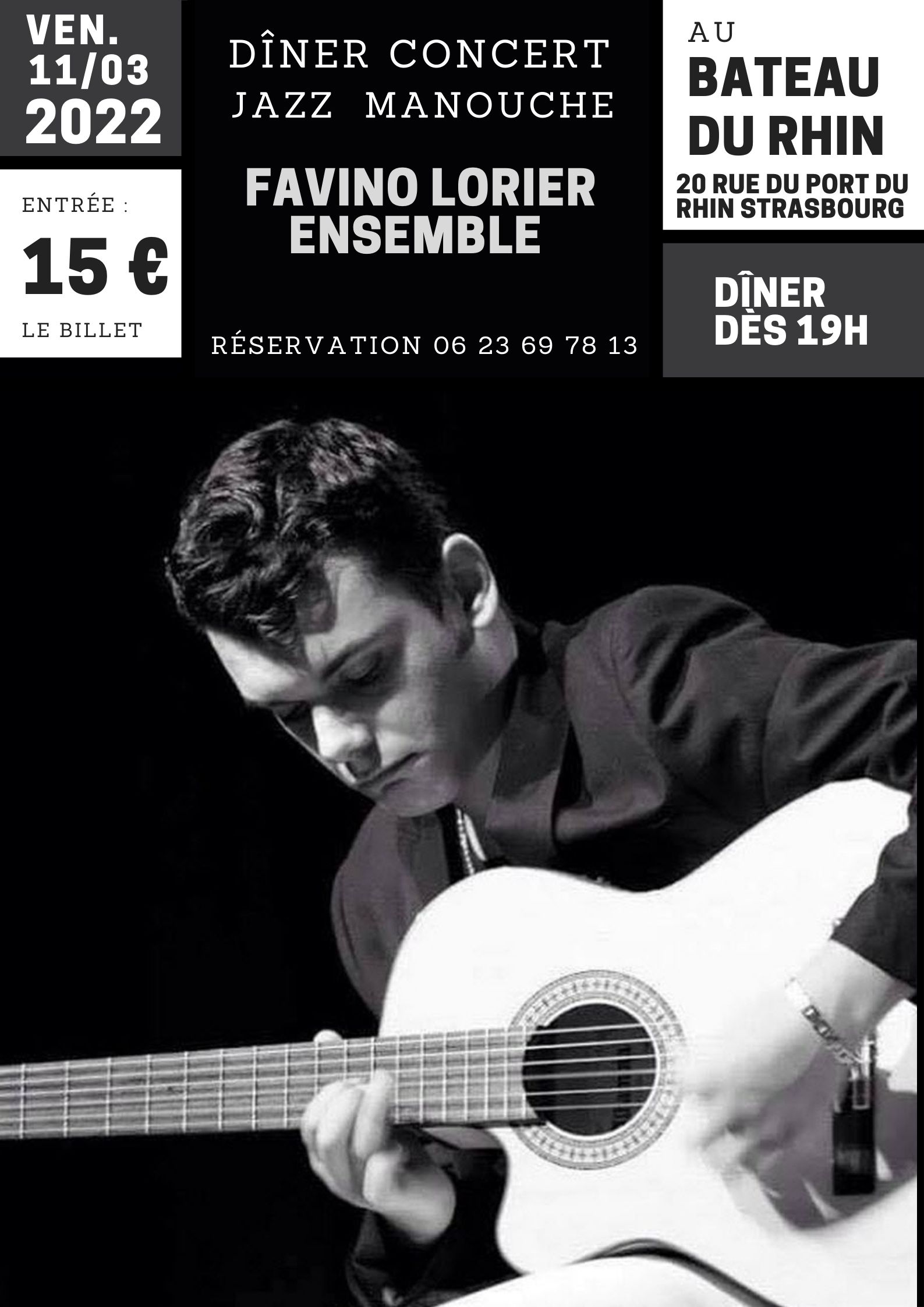 Favino Lorier figure incontournable du Jazz Manouche depuis l'âge de 17 ans se produira au Bateau du Rhin ce vendredi 11 mars !