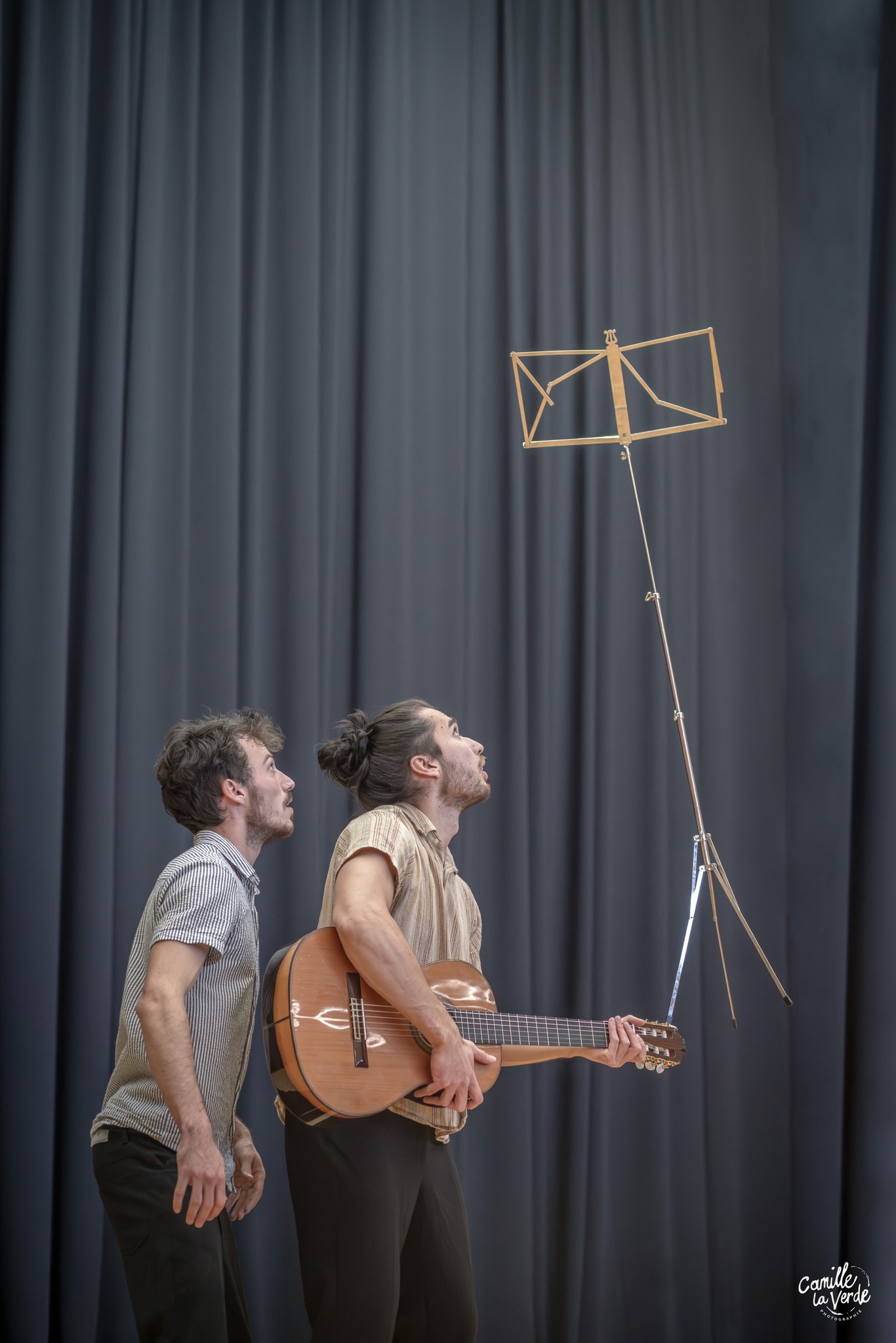 Spectacle intimiste et familial mêlant musique et jonglerie, accessible à toutes et tous. Les 2 artistes emmènent le public dans un univers où les instruments de musique dialoguent avec des objets de jonglage dans un hommage vibrant à la tradition des jongleurs médiévaux qui parcouraient les villes pour divertir, raconter des histoires et exécuter des prouesses techniques.