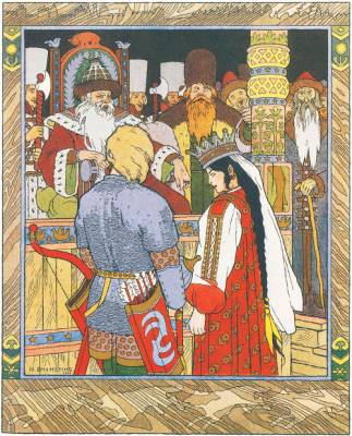 Le premier, « Ivan Tsarévitch et le loup gris », prend place dans un certain royaume où vivait le tsar Démian avec ses trois fils : Piotr, Vassili et Ivan. Ce tsar possède un jardin comme on n’en trouve pas de pareil au monde, plein de fleurs rares et d’arbres précieux. Le plus précieux de tous est un pommier qui donne des pommes d’or. Mais chaque jour, une pomme disparaît ! Commence alors l’aventure du plus jeune fils, Ivan, qui doit réparer le tort fait à son père. Un voyage initiatique, où les évidences sont comme des miroirs. Le succès vient-il lorsqu’on suit ses désirs - C’est en tout cas le loup qui, cette fois, sera le sage de cette histoire !