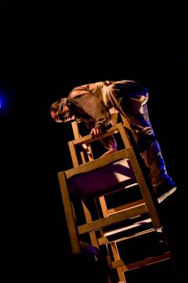 Pascal Rousseau recherche l’équilibre et se livre à des prouesses insensées pour l’atteindre : équilibre sur une petite planche portée par deux hommes, ascension d’une pile de chaises à l’aveugle, les yeux bandés...  Il évoque des bribes de souvenirs, puisés dans son enfance passée avec son grand-père, dans une ambiance poétique.