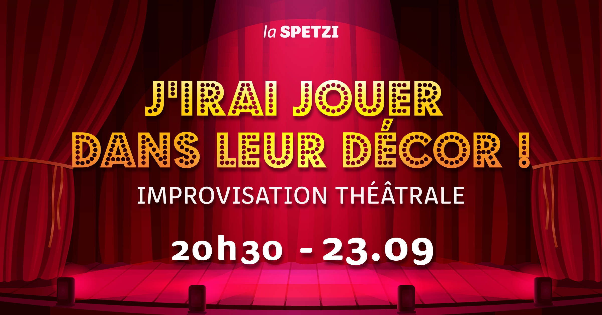Les comédiens et comédiennes d'improvisation de La Spetzi se lanceront dans une aventure théâtrale unique pour le spectacle "J'irai jouer dans leur décor". Ils découvriront le soir-même le décor de la pièce "Les visions de Simone Machard", prêté le jour de relâche par la compagnie La Claque, et s'en inspireront pour improviser une pièce d'environ une heure. Mais ce qui rend le spectacle vraiment spécial, c'est que c'est le public qui aura le pouvoir de façonner l'histoire. Vous pourrez décider de l'interprétation du décor, des relations entre les personnages, de leur métier, de leurs caractéristiques... Tout sera entre vos mains !