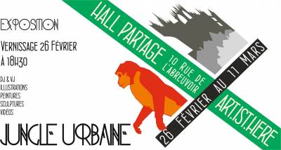 Elle se tiendra à HALL PARTAGE, charmante galerie située au 1O rue de l’abreuvoir et aura pour thème : JUNGLE URBAINE !! Cette exposition commence sur les chapeaux de roues le 26 février avec une soirée dont nous sommes les seuls à avoir le secret, qui démarrera à 18h30 et, vous emmènera jusqu’au bout de la nuit ! Vous pourrez venir apprécier un super DJ/VJ , déambuler entre les tableaux, sculptures, installations, vidéos et pleins d’autres surprises spécialement concoctées pour vous ! Nous vous attendons nombreux pour venir festoyer avec nous dans un univers surprenant créé spécialement pour l’évènement ! Pourquoi pas un verre à la main -