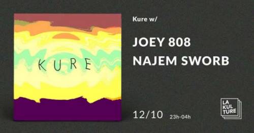 "Cela fait depuis l’ouverture de La Kulture, que Najem Sworb et Joey808 viennent régulièrement jouer au club. Sans se connaître, ils adoptaient une sélection similaire, un toucher et une sensibilité comparable. Atomes crochus entretenus, les 2 compères lancent leur résidence nommée «KURE» !"