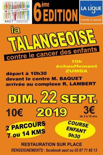 Arrivée de la course au complexe Raymond Lambert (36 rue de la liberté, 57525 Talange). Restauration et buvette sur place.Les cancers sont la deuxième cause de mortalité chez l’enfant. Prévention, soins, recherche, soutien des familles, loi pour le droit à l’oubli. nous voulons tout donner pour aider la ligue à mettre en place ce dont ils ont besoin. et nous voulons rappeler,