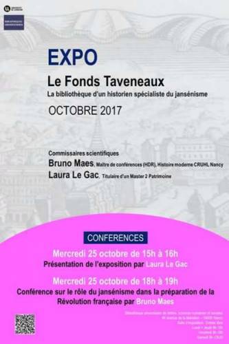 - 18h à 19h, Conférence sur le rôle du jansénisme dans la préparation de la Révolution française par Bruno MAES, Maître de conférences (HDR) en Histoire moderne au CRUHL (Centre de recherche universitaire lorrain d’histoire) de Nancy.