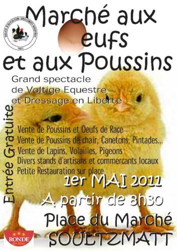 La société d’Aviculture de Soultzmatt-Rouffach et env. organise son 7ème Marché aux Œufs et aux Poussins le 1er Mai au centre de Wintzfelden partir de 8h30.