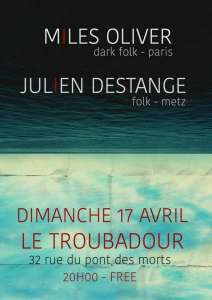 MILES OLIVER est un songwriter parisien, alternant guitare électrique et acoustique, piano et boucles. Après plus d’une décennie de concerts punk hardcore dans diverses formations, MILES OLIVER exprime ses mélodies solitaires et ses sombres histoires de famille. Une alchimie lo-fi rock, sad folk et poésie faisant penser à Nick Drake, Sonic Youth and Troy Von Balthazar. Après son premier album "Breathe", s’ensuit plus de 90 concerts en France, Belgique, Allemagne, Espagne, Suisse et Pologne.
