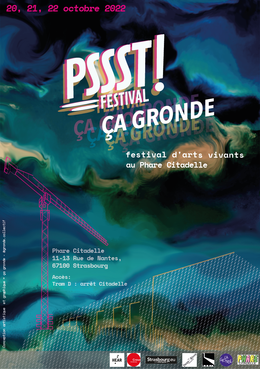 Le PSSST ! Festival fait son retour tant attendu, après son report de cet été ! Nous sommes heureux·ses de vous retrouver et de vous présenter nos six créations inédites. Cette fois, nous vous accueillons du 27 au 29 octobre 2022 dans le magnifique lieu du Phare Citadelle. Entre l’eau, les grues de chantier, les péniches et les ponts à l’horizon, l’environnement offre une source d’imagination pour l’implantation de formes scénographiques. Le collectif ça gronde, porté par l’association 23bis, active ce nouveau lieu et vous promet une édition du tonnerre !