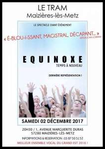 Après 4 années d’une folle aventure, plus de 3000 spectateurs, Equinoxe jouera une dernière fois son spectacle Temps à Nouveau, le 2 décembre au TRAM à Maizières-lès-Metz.