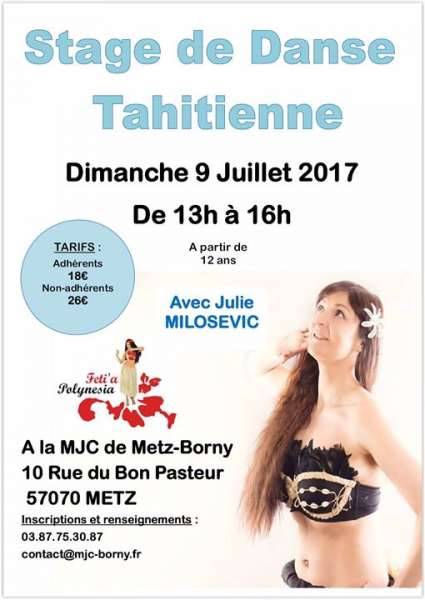 La MJC de Metz-Borny organise un Stage de Danse Tahitienne le Dimanche 9 Juillet de 13h à 16h à la MJC.