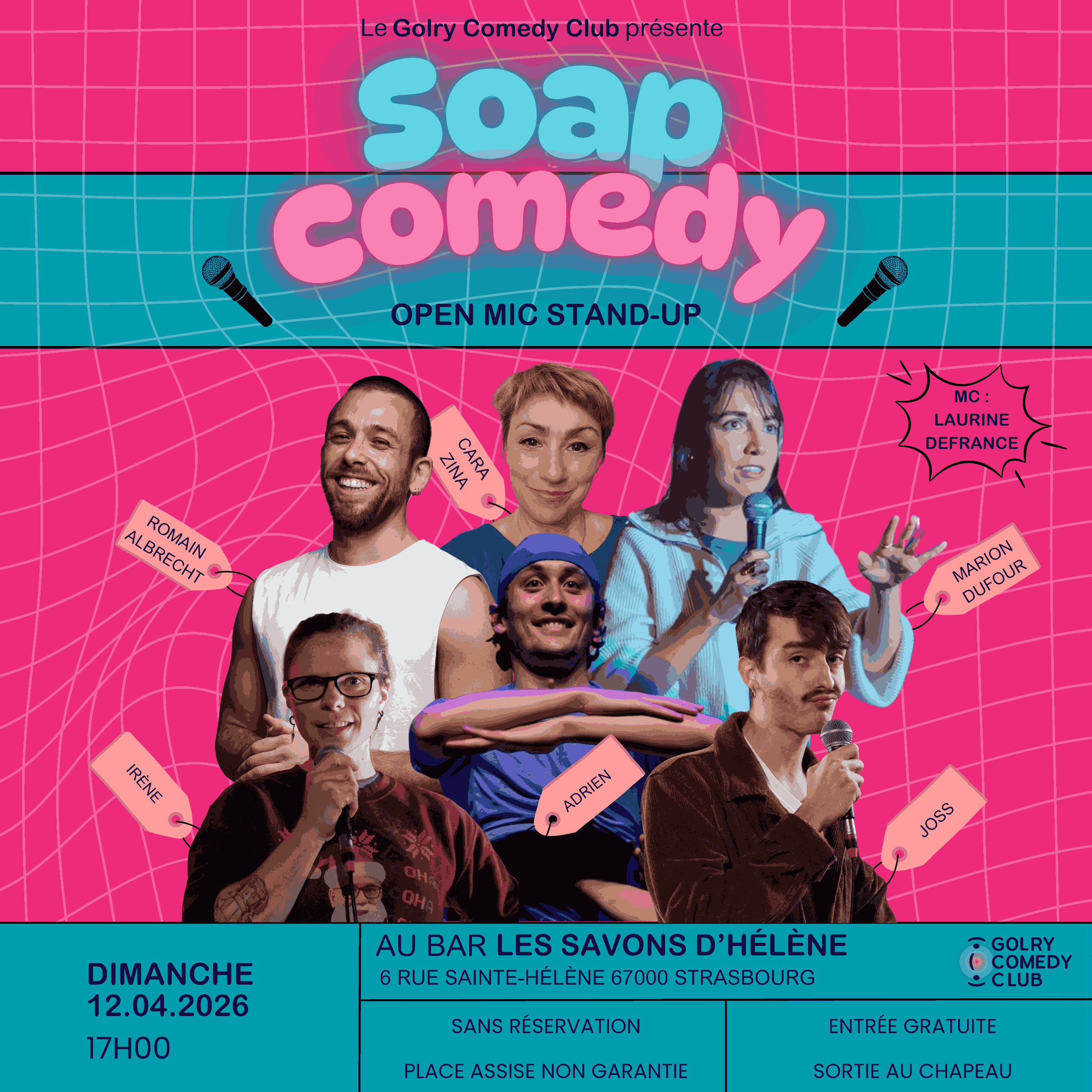 Le Soap Comedy, c'est l'open mic de stand-up du Golry Comedy Club et des Savons d'Hélène, un rendez-vous stand up dominical qui dure depuis presque 4 ans !