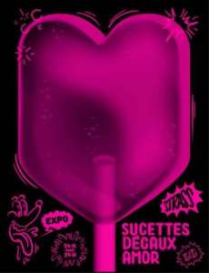 L’exposition Sucettes décaux amor ! se situe à l’ultime frontière de l’art urbain, derrière la transparence architecturale.