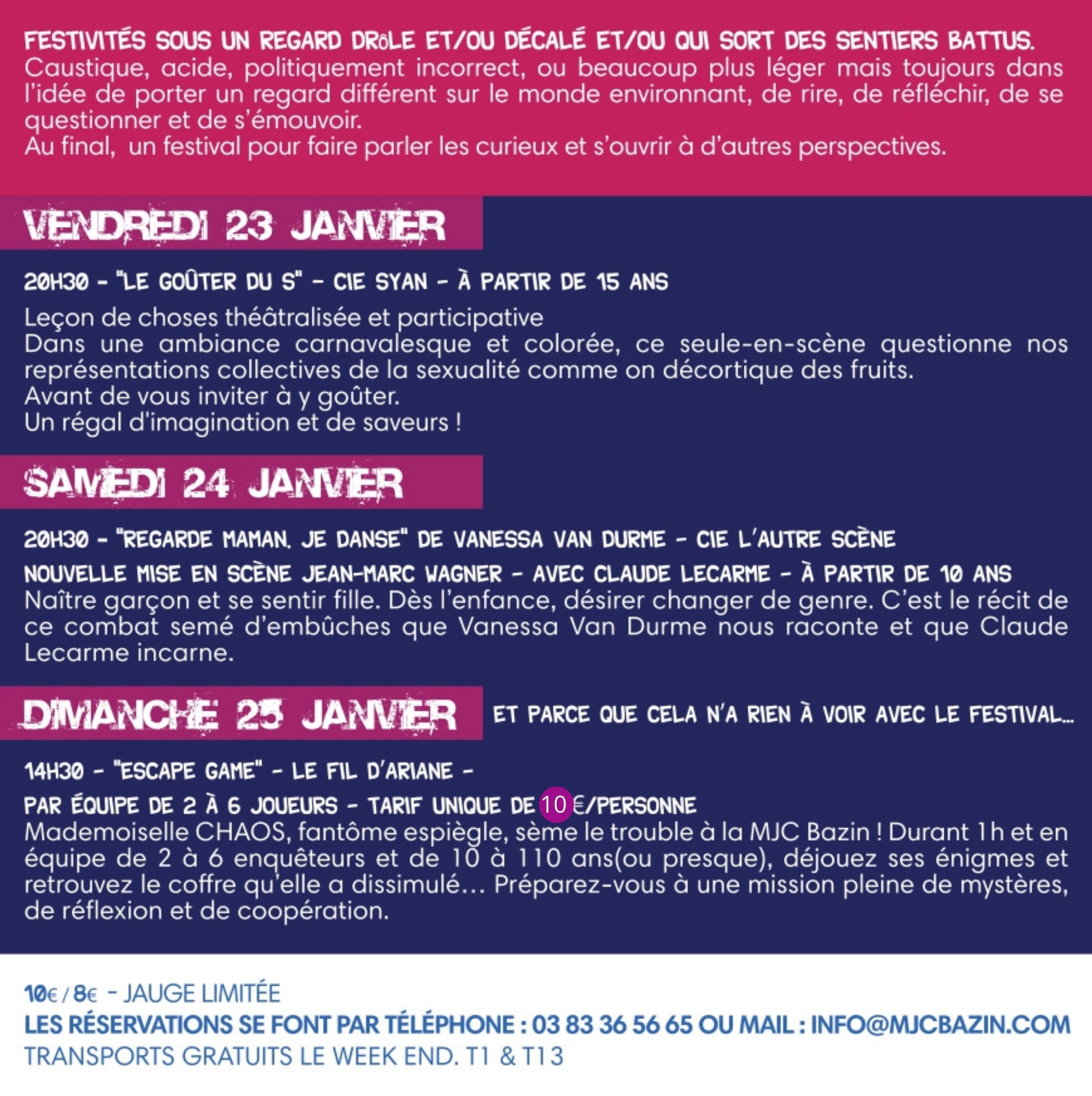 Festivités sous un regard drôle et/ ou décalé et/ou qui sort des sentiers battus.