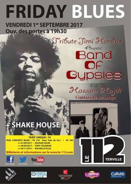 - 21h45 : BAND OF GYPSIES ’Tribute Jimi Hendrix’ avec Hassan Hajdi (Guitariste d’Ange)