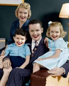 A première vue, on identifie dans les œuvres de Weronika Gesicka l’atmosphère idéale du milieu du XXe siècle, en Occident. Des enfants sages et des femmes aux brushings impeccables évoluent dans des cuisines équipées, les pères rentrent du travail ou tondent la pelouse. C’est ces images familières que l’artiste s’attache à déconstruire en créant des failles et suscitant le doute. Les plans deviennent en effet distordus par la fusion des personnages avec le décor. De dangereux accidents menacent et fragmentent les corps, et les visages en particulier ont tendance à disparaître. L’artiste rentre sous la peau des apparences, et ce faisant, évoque les non-dits de cette société idéalisée : le patriarcat, la non-représentation des minorités, le poids des injonctions sociales, la normativité de la sexualité. Elle nous amène à réfléchir sur la valeur de ces conceptions dominantes avec un humour grinçant.