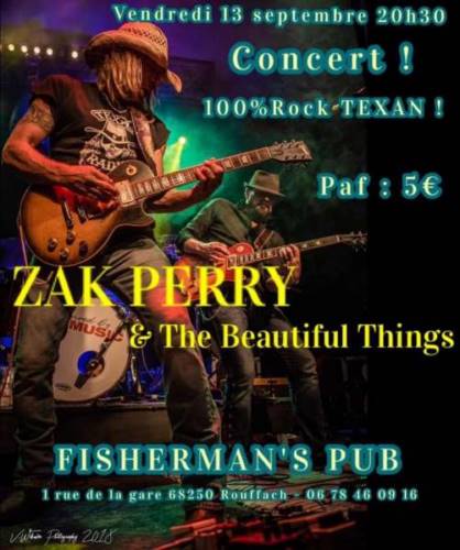 Vendredi 13 septembre, les Texans de Zak Perry & The Beautiful Things seront au Fisherman’s Pub de Rouffach (France, 68) pour faire parler la poudre et cracher les Gibsons !