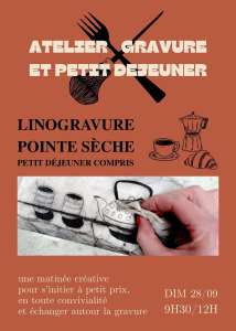 Nous pratiquons aussi la taille-d’épargne, c’est à dire la linogravure et la gravure sur bois.