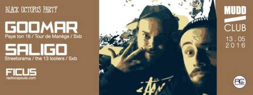 La Black Octopus party revient aux sources ce mois de Mai en invitant deux Beatmakers hiphop Strasbougeois aka SALIGO et GOOMAR (fondateurs des séries rapologiques paye ton 16 et du collectif streetorama’).