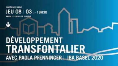 Présentation de l’IBA Basel 2020 : son fonctionnement en tant qu’organisme trinational (CH-D-F) et d’un ou deux de ses projets phares en faveur du développement territorial (urbain, paysager, infrastructures) de l’Agglomération trinationales de Bâle et du Laboratoire des Universités IBA mené entre 2015 et 2017 avec l’ENSA Strasbourg/Saint-Étienne dont l’exposition Sierentz à l’horizon 2030-2050 fait suite.