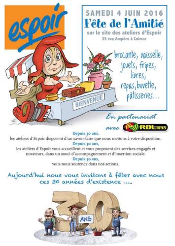 Espoir organise sa fête de l’amitié, samedi de 10h à 18h, sur le site des Ateliers, 35 rue Ampère à Colmar (près du Stadium).