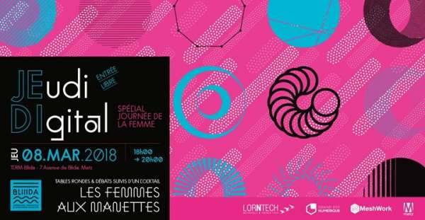 Le 8 mars, les femmes seront aux manettes du JEudi DIgital spécial Journée internationale des droits des femmes ! En partenariat avec Grand Est Numérique, Meshwork et la Ville de Metz, TCRM-Blida consacrera son rendez-vous hebdomadaire à la question du rapport entre les femmes et les nouvelles technologies.