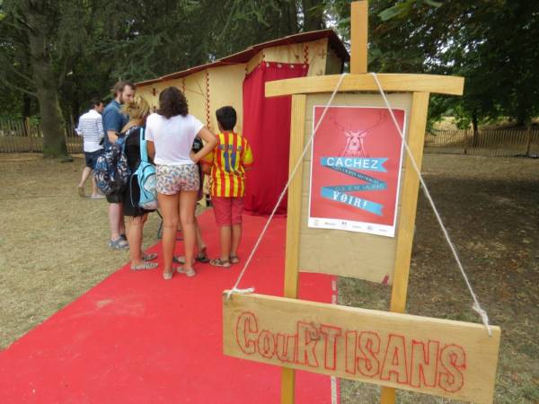 Il se monte et se démonte (grâce aux pouvoirs magiques contenus dans les bras de nos Courtisans bricolos) et se déplace dès qu’il flaire un public à courtiser !