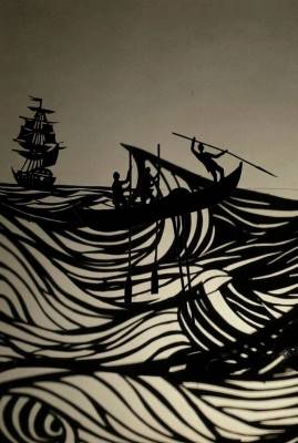 Inspiré du conte Moby Dick d’Herman Melville, Pekee-Nuee-Nuee met en scène l’univers marin autour de rencontres entre un explorateur, un pêcheur, un musicien et une baleine. Dans l’obscurité, une boîte mystérieuse s’illumine, une machinerie s’anime. Les trois personnages naviguent à travers les océans, mûs par une quête incertaine. Leurs destins se croisent dans le mystère des profondeurs ; leur histoire évoquant, chacune à leur manière, l’inéxorable lien qui les unit à la baleine. Ces aventures de papiers se jouent dans un théâtre d’ombres, ventre lumineux où s’enchainent jeux de métamorphoses, de reflets et de transparences. Pekee-Nuee-Nuee est un spectacle onirique et musical inclassable, dont chaque scène dévoile un frêle tableau vivant, véritable monde en noir et blanc dont on devine les mille couleurs. Une fable poétique pour petits et grands qui invite à un voyage merveilleux.