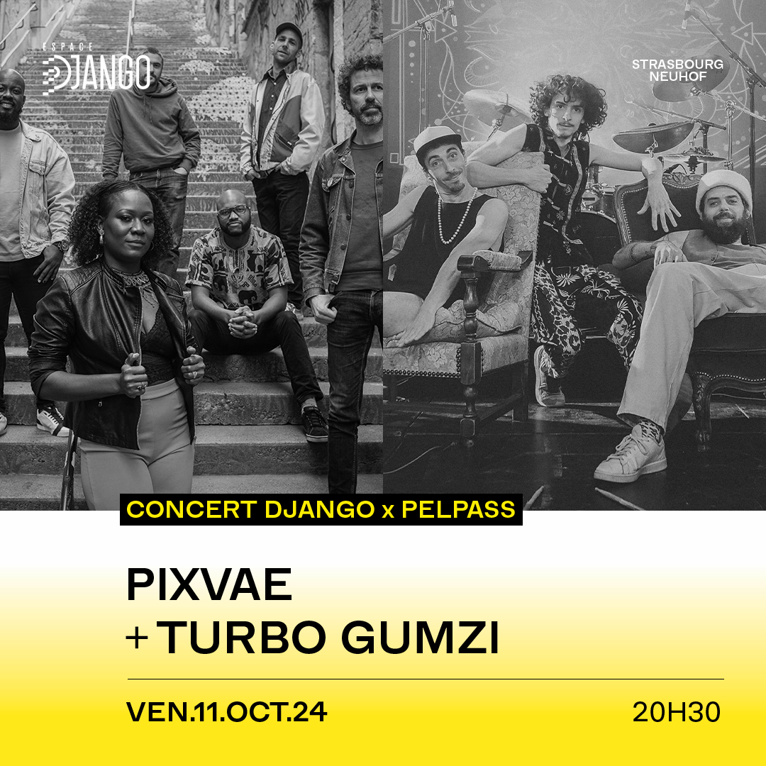 Camarades de longue date, nous associons nos cher·es ami·es de Pelpass à cette soirée qui exprime notre goût commun et immodéré pour la découverte, l’hybridation et la fête. Le groupe Pixvae incarne cette rencontre explosive, entre polyrythmies, chants afro-colombiens, et énergie jazzcore ou rock-noise, c’est la transe assurée ! Pour faire la fête, on compte également sur les locaux de Turbo Gumzi, un power trio hybride entre hip-hop et tallava, vitaminé par des machines et des samples électroniques. Une transhumance stellaire vers un son turbo/folk/ghetto/dancefloor. Plus on est de folles et de fous, plus on rit, et nous avons très envie de rire.