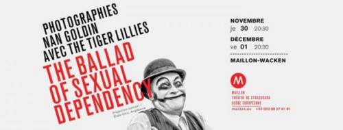 Série photographique emblématique de Nan Goldin, The Ballad of Sexual Dependency a été initiée à la fin des années 1970 à New York : l’oeuvre n’a rien perdu de son vif éclat originel et possède aujourd’hui encore une rare force de saisissement du regard. Le spectacle donne à voir toutes ces photographies en un hypnotique diaporama, accompagné en live par les Tiger Lillies, fantasque trio londonien semblant jaillir d’un cabaret déglingué. Leur musique sombre et entêtante s’accorde parfaitement aux images assemblées par Nan Goldin, ces frémissants instantanés de tragicomédie humaine.