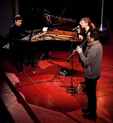 L’enchevêtrement des sons où voix et clarinette se rapprochent, se croisent et s’éloignent ponctués par le piano tantôt rythmique tantôt harmonique, ouvre un espace dépouillé, infime et infini, frôlant le silence comme une caresse.