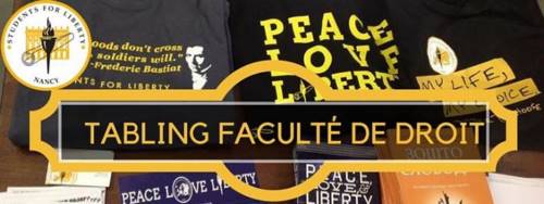 Students for Liberty Nancy se présente le 19 avril dans la cour de la Faculté de Droit ! Nous serons présents avec un stand d’information toute la journée. Vous aurez la possibilité de discuter avec nous des idées pro-liberté, et aussi vous munir de nos livres relatifs au sujet d’une société libre. Nous ne sommes pas là pour vous vendre un carte membre, mais des idées!