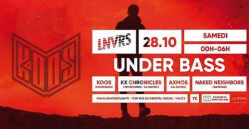 Nous revoilà pour la deuxième édition de UNDER BASS les zins ! L’artiste KOOS, du label CONFESSION sera des nôtres, prêt à vous offrir une soirée de pure folie ! Pas d’excuse d’absence cette fois car c’est les vacances mais aussi Halloween de quoi annoncer un pur week-end !